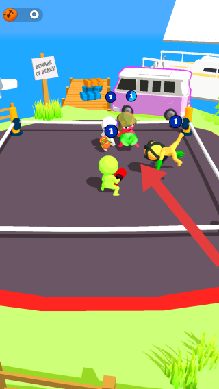 3、格斗場地、圍欄、草叢、樹樁,呈現(xiàn)游戲中戰(zhàn)斗交互場景,可看出是多人對戰(zhàn)的休閑格斗玩法。