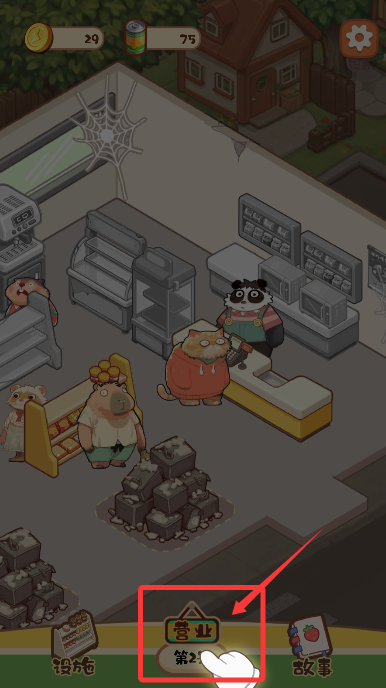 2、輕觸底部"營(yíng)業(yè)"鍵啟動(dòng)店鋪運(yùn)營(yíng),系統(tǒng)會(huì)自動(dòng)生成顧客前來(lái)光顧。