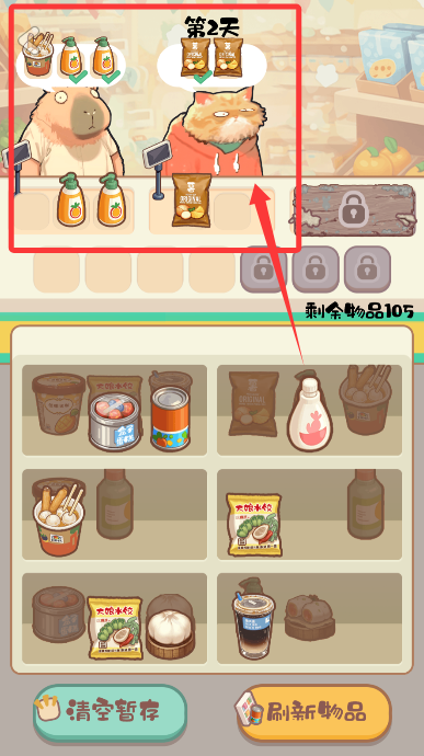 1、游戲開(kāi)始后,需消耗金幣補(bǔ)充貨架商品,保持貨物充足避免空缺。