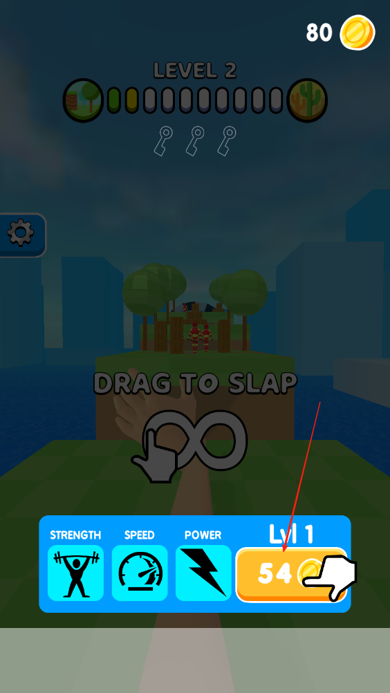 3、賺夠金幣后,在每一關(guān)卡開始前,都可以升級手的各方面數(shù)值,例如力氣,速度等,增加攻擊力。