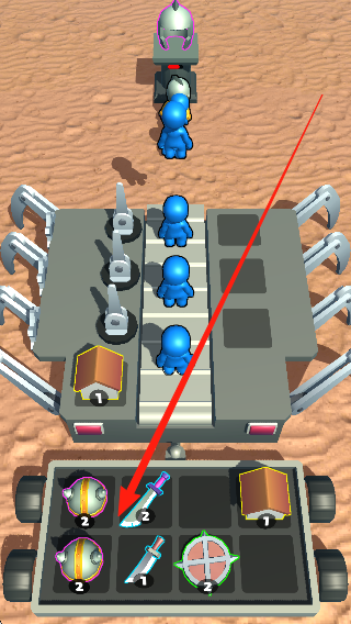 1、收集初始機(jī)器零件,嘗試將相同零件合并,制作出基礎(chǔ)戰(zhàn)爭(zhēng)機(jī)器,熟悉合并規(guī)則,開(kāi)啟與敵人斗爭(zhēng)的闖關(guān)旅程。