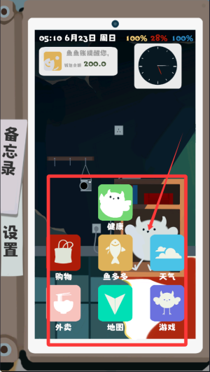 1、游戲采用簡(jiǎn)約直觀的操作界面,玩家通過點(diǎn)擊APP圖標(biāo)即可完成各項(xiàng)生存活動(dòng),操作門檻極低,新手也能快速適應(yīng)。