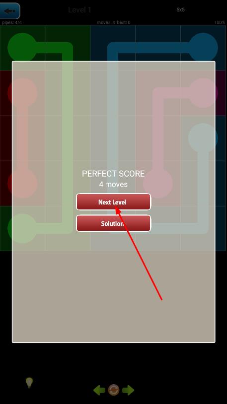 3、成功連通所有管道,點擊Next Level進入下一關(guān),查看步數(shù)等成績。