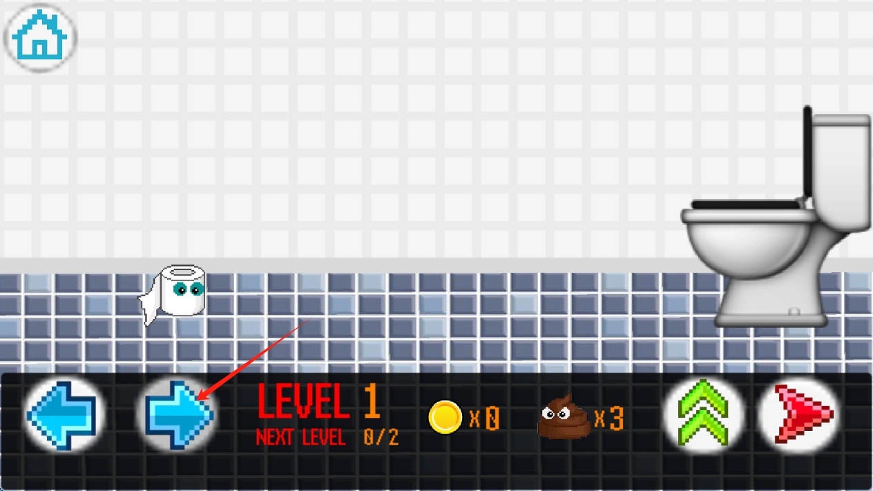 2、關(guān)卡中,按藍(lán)色方向鍵,操控衛(wèi)生紙移動(dòng),向馬桶方向推進(jìn),點(diǎn)擊方向鍵移動(dòng)人物。