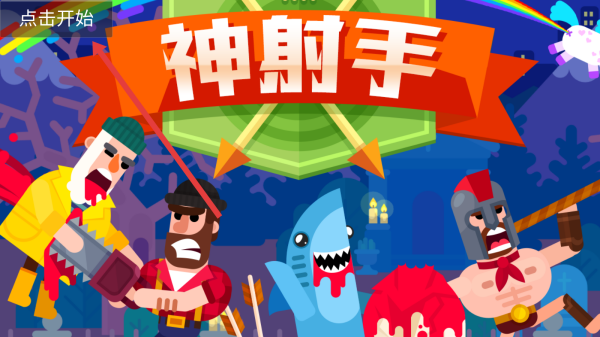 1、觸碰游戲啟動界面左上角的點擊開始按鈕,隨即進(jìn)入神射手世界,準(zhǔn)備開啟射箭對戰(zhàn)之旅。