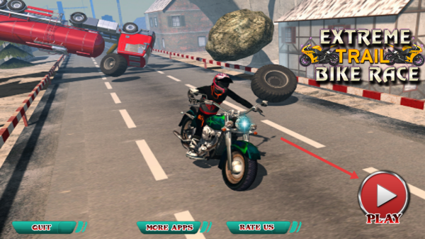 1、主界面點(diǎn)擊紅色PLAY,選摩托參與EXTREME TRAIL BIKE RACE,進(jìn)入賽道,準(zhǔn)備特技競速。
