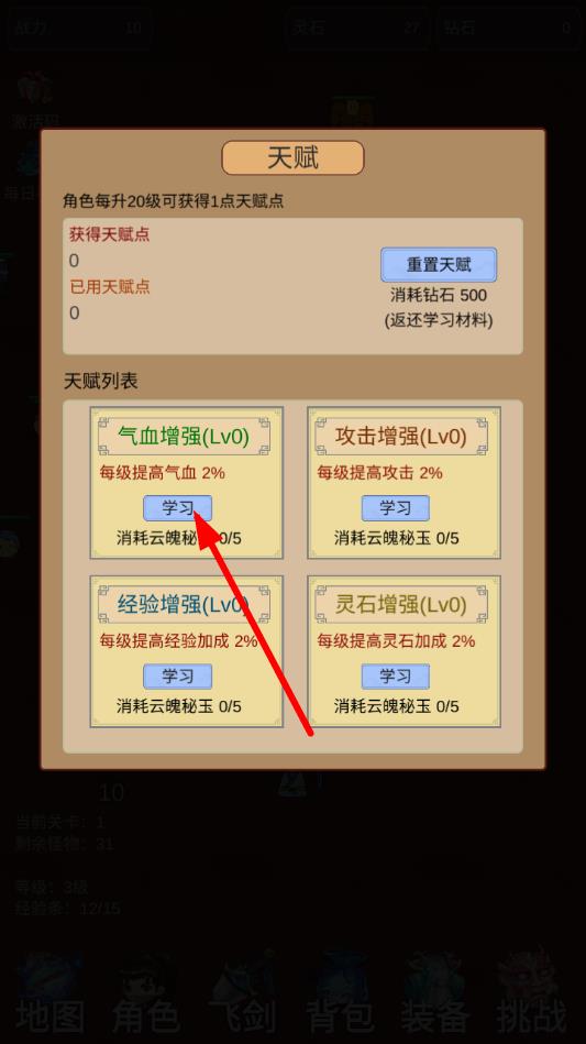 1、初入修仙界先創(chuàng)建角色,選擇初始門派,領(lǐng)取基礎(chǔ)功法與木劍,按照指引完成首次吐納修煉,開啟修仙之路。