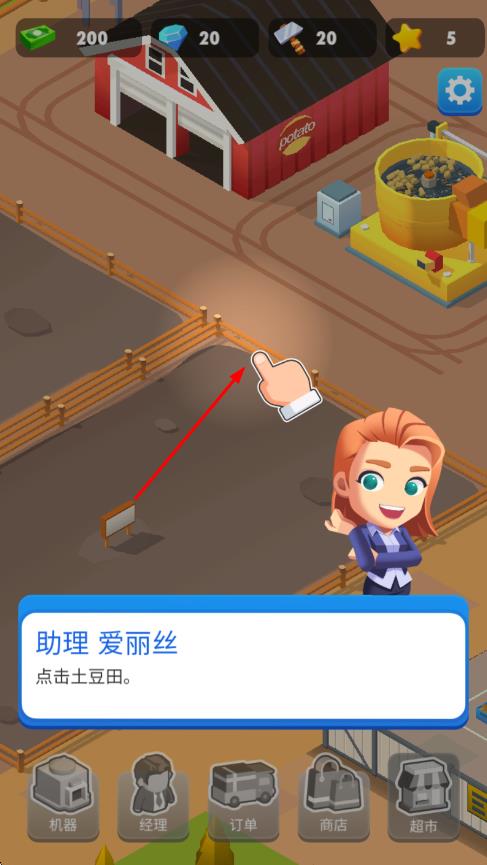 1、進(jìn)入游戲后,接手初始土豆種植基地與小型加工廠,學(xué)習(xí)種植、收獲的基礎(chǔ)操作,完成第一筆土豆銷售,開啟經(jīng)營之路。