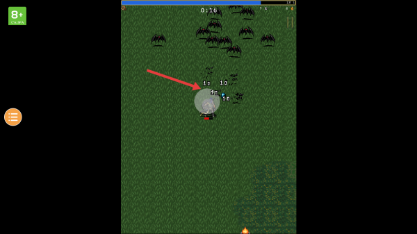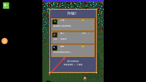 2、戰(zhàn)斗中留意血量、怪物攻擊,靈活走位輸出,積累經(jīng)驗,觸發(fā)升級獲取技能選擇。
