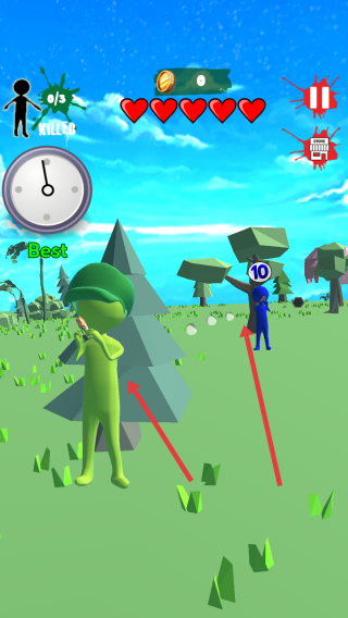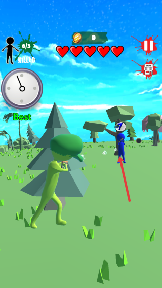 2、關(guān)卡中,操控綠色火柴人移動(dòng)、瞄準(zhǔn),注意藍(lán)色敵人頭上的數(shù)字,代表其血量。
