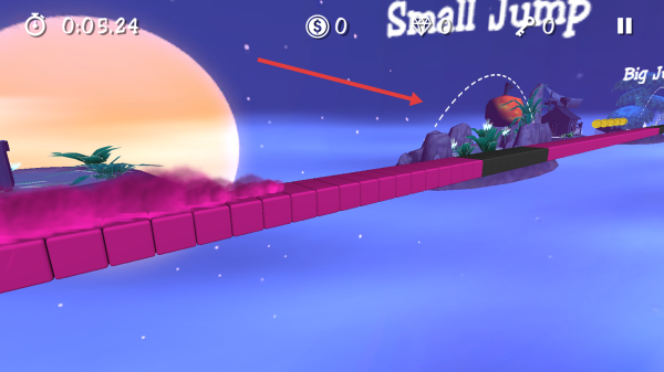 1、點擊Play進入Level01,操控蝸牛沿粉色路徑前進留意Small Jump,提示提前準備跳躍。