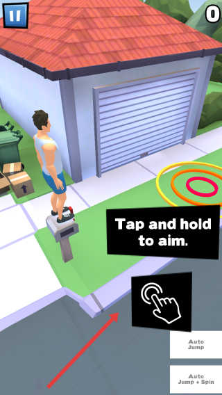 1、在游戲初始界面,長按屏幕瞄準,利用Tap-and-hold-to-aim操作,讓角色精準跳躍向目標。