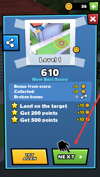 2、在Level-1結(jié)束后,進入到結(jié)算界面時,點擊NEXT按鈕,領(lǐng)取獎勵,進入下一關(guān)選擇界面。