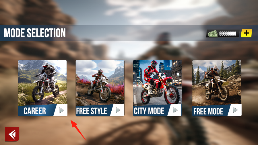 1、點擊CAREER生涯模式,開啟摩托越野的闖關(guān)生涯,積累經(jīng)驗和獎勵。