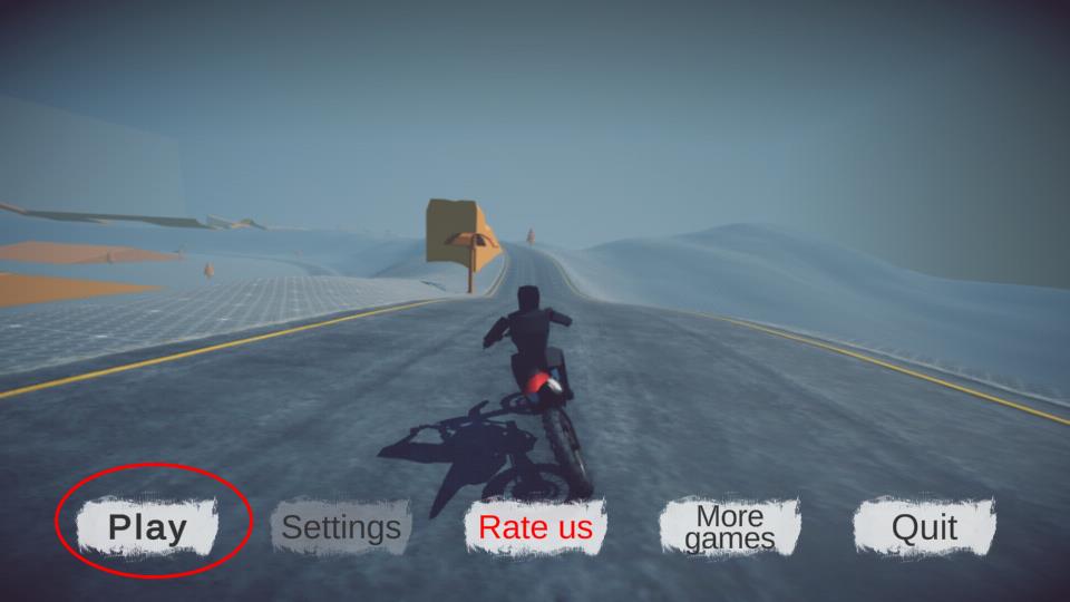 1、需要點(diǎn)擊左下角Play按鈕開啟摩托競速挑戰(zhàn),操控角色駕駛摩托踏上道路,直面多樣地形與潛在障礙,開啟刺激競速流程。