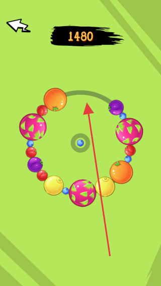 3、隨著游戲推進,面對多種顏色小球環(huán)繞,精準操作發(fā)射小球,消除更多小球,爭取獲得如界面上方1480這樣的高分。