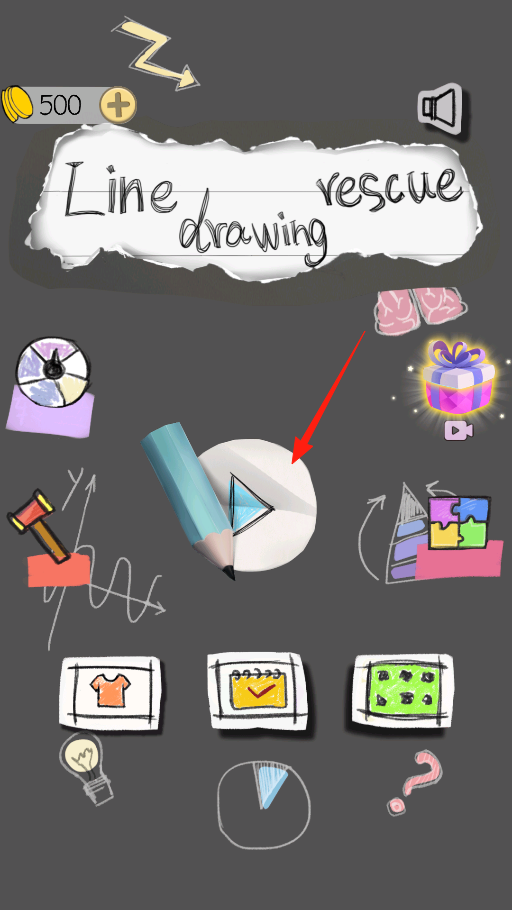 1、進(jìn)入畫線救助主界面,點(diǎn)擊帶有三角形播放圖標(biāo)的按鈕,開啟繪圖救援關(guān)卡,通過點(diǎn)擊該按鈕,進(jìn)入核心玩法,為后續(xù)用繪圖幫助角色避險做準(zhǔn)備。