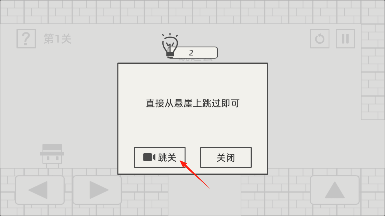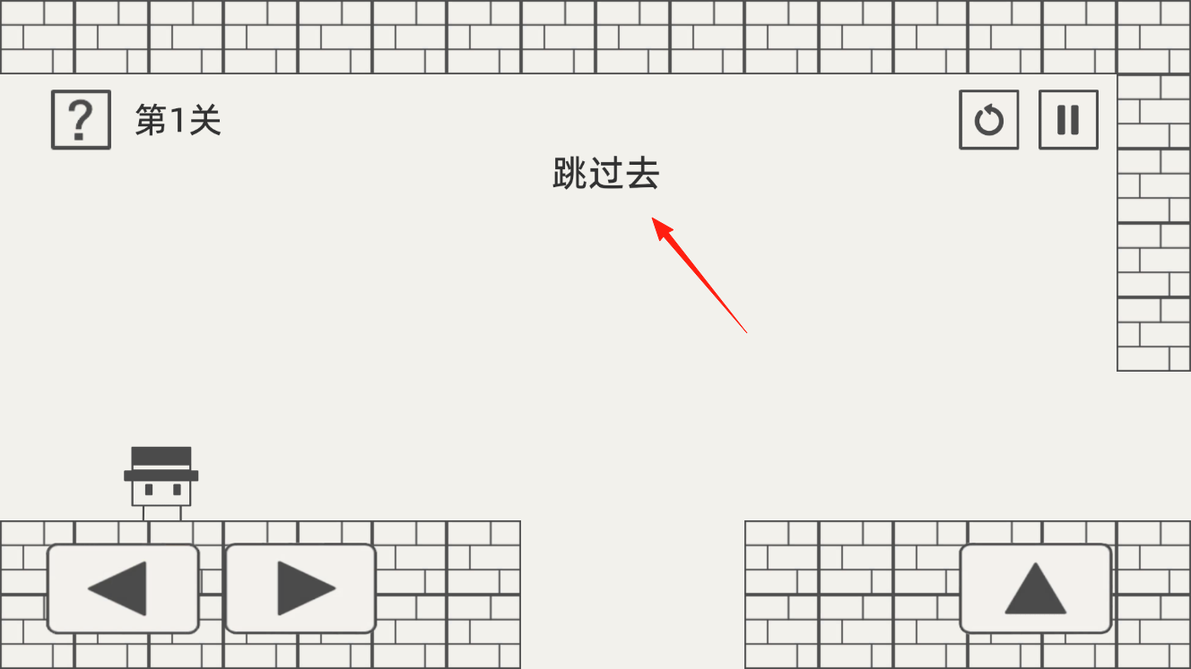 1、進(jìn)入第1關(guān)游戲界面,看到角色與跳過去提示,操控角色移動,嘗試跨越障礙,通過操作方向與跳躍鍵,讓角色按提示完成跳躍,體驗(yàn)基礎(chǔ)闖關(guān)玩法,感受動作操作樂趣。