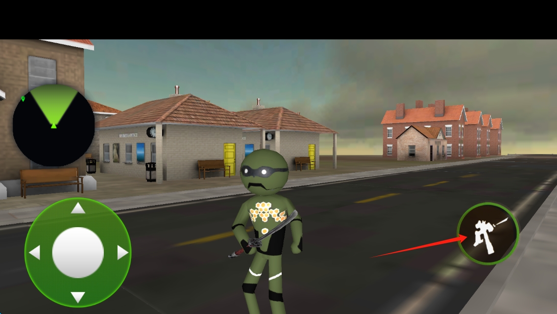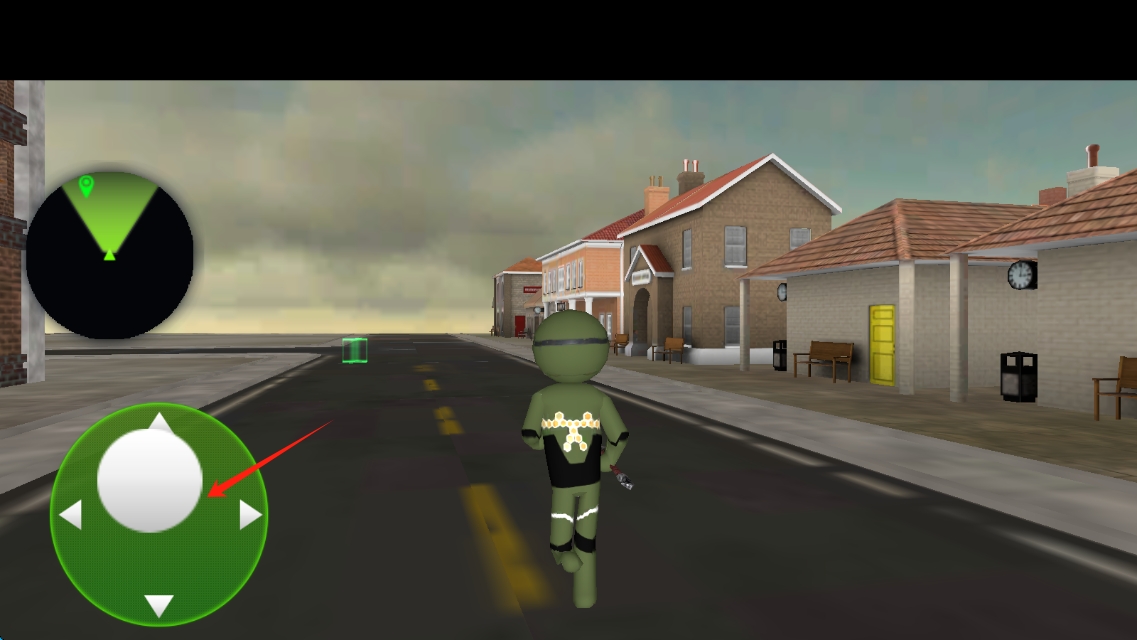 2、用左側(cè)搖桿移動(dòng)角色,跟隨地圖指引(綠色標(biāo)識(shí) ),探索城市,尋找目標(biāo),撥動(dòng)輪盤移動(dòng)人物。