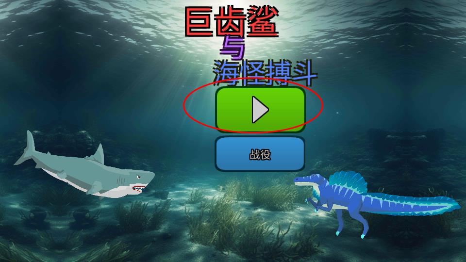 1、點(diǎn)擊綠色播放按鈕開啟游戲,進(jìn)入海洋戰(zhàn)斗場(chǎng)景,操控巨齒鯊直面海怪,開啟刺激對(duì)決流程。