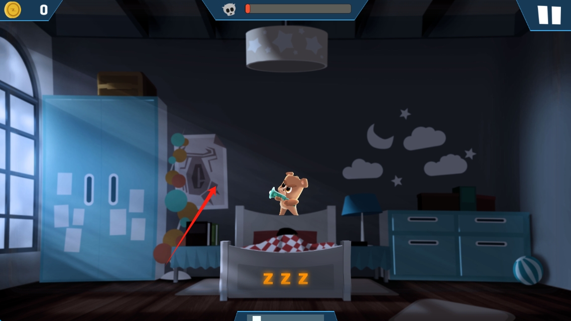 1、操控小熊闖關(guān):控制小熊在夢(mèng)境關(guān)卡中冒險(xiǎn),面對(duì)不斷出現(xiàn)的邪惡怪物,運(yùn)用武器進(jìn)行射擊消滅,一路推進(jìn)關(guān)卡,驅(qū)散惡夢(mèng)。