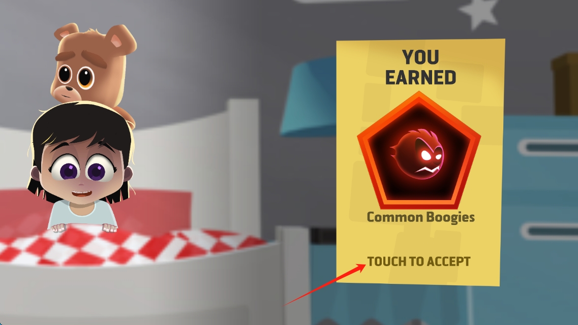 3、完成關(guān)卡后,點(diǎn)擊TOUCH TO ACCEPT,領(lǐng)取獎(jiǎng)勵(lì),用于升級(jí)玩具熊,挑戰(zhàn)新關(guān)卡,點(diǎn)擊繼續(xù)關(guān)卡。