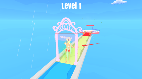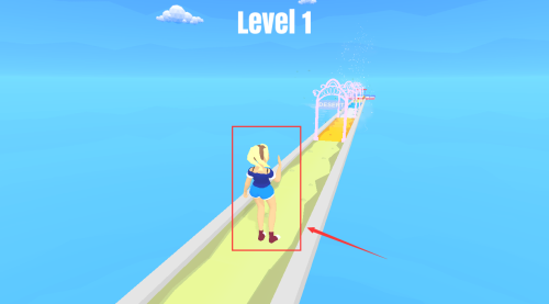 1、控制紅框金發(fā)女孩,沿道路走向粉色拱門過(guò)關(guān)。