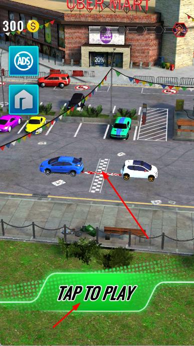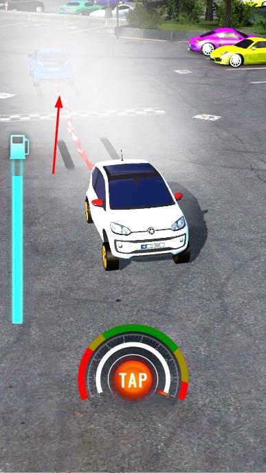 2、點(diǎn)擊TAP TO PLAY,操控白色賽車,按TAP按鈕控制加速,拉扯紅繩,爭(zhēng)取將對(duì)方拉過中線。