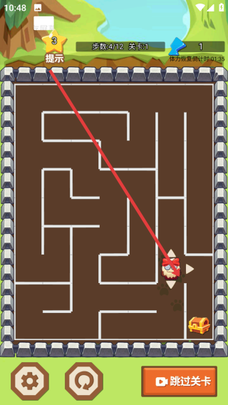 2、探索特色迷宮破解路徑:穿梭于多種特色迷宮中,每種迷宮的地形特點與路徑規(guī)律各不相同,用戶需仔細觀察場景細節(jié),結(jié)合關(guān)卡提示尋找正確路徑,逐步破解迷宮走出困境。