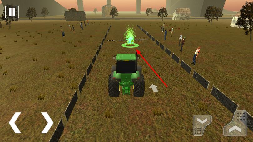 1、駕駛綠色拖拉機(jī),在田野賽道行駛,前往綠色發(fā)光區(qū)域,可能獲取增益。