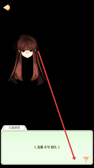 3、黑暗劇情分支:黑色背景現(xiàn)韓語(yǔ)對(duì)話…??????…按劇情選互動(dòng)按鈕,如返回箭頭。