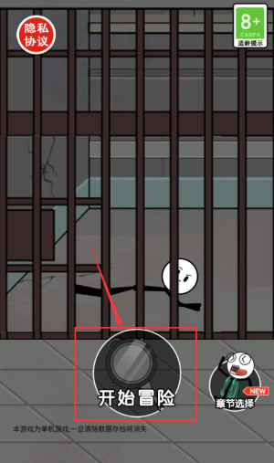 4、點(diǎn)擊開始冒險按鈕,進(jìn)入火柴人逃脫游戲。