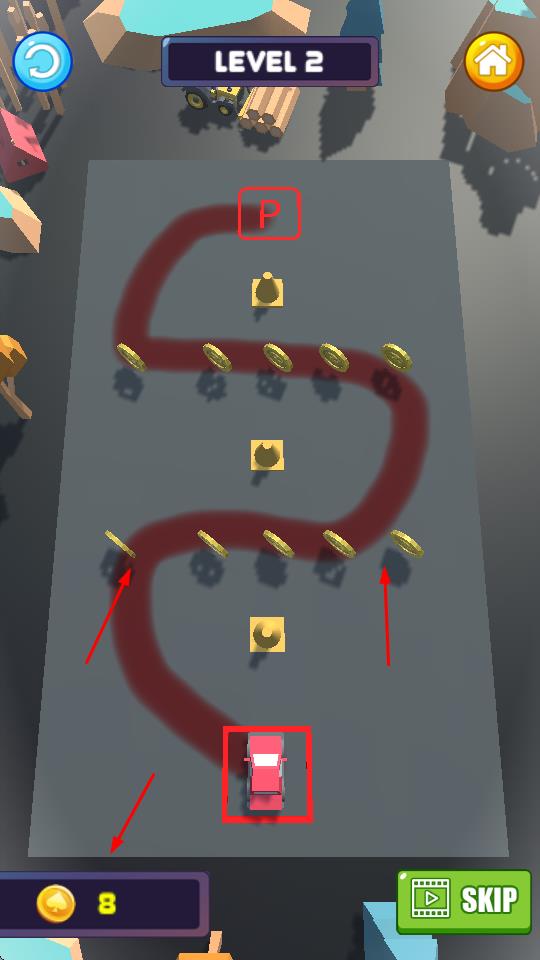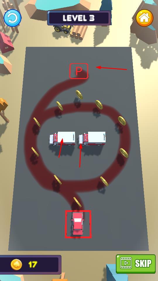 3、闖關(guān)升級(jí)挑戰(zhàn)自我:關(guān)卡內(nèi)容豐富,每個(gè)關(guān)卡的障礙物布局、停車位位置都不同,難度隨關(guān)卡遞增,玩家需不斷優(yōu)化畫線策略,挑戰(zhàn)更復(fù)雜的停車場(chǎng)景,提升路線規(guī)劃能力。