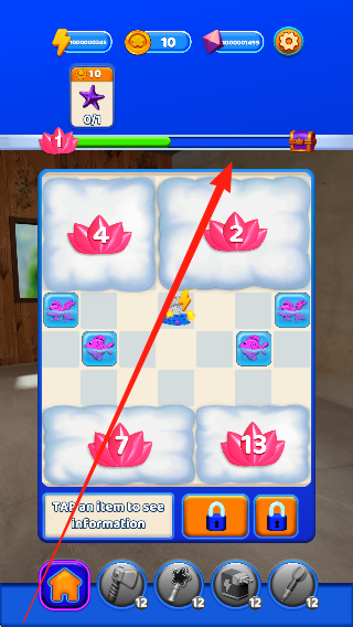1、進(jìn)入初始界面,看到簡單的消除關(guān)卡和待裝修的基礎(chǔ)空間,開始嘗試消除,開啟闖關(guān)與裝修之旅。
