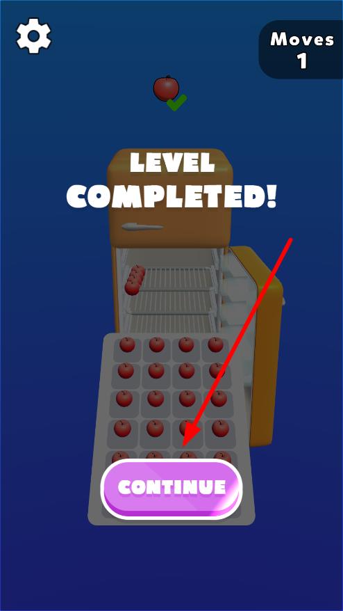 3、成功消除足夠蘋果,完成收集任務后,顯示“LEVEL COMPLETED!”,點擊“CONTINUE”按鈕,進入下一關挑戰(zhàn)更高難度。