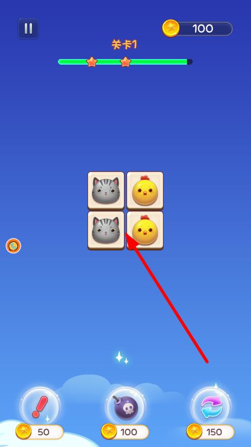 2、在關(guān)卡1中,滑動(dòng)屏幕連接相同圖案的方塊,成功消除后推進(jìn)關(guān)卡進(jìn)度,注意合理規(guī)劃連接路徑。