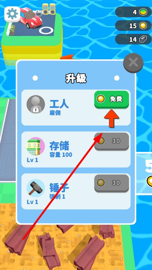 2、資源循環(huán)機(jī)制:采集木材、金幣等資源,用于升級工具、雇傭工人,提升采集效率與存儲容量,進(jìn)而獲取更多資源,形成采集、升級資源循環(huán),推動島嶼發(fā)展。