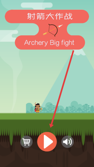 1、在射箭大作戰(zhàn)初始界面,根據(jù)箭頭指引處,點擊紅色播放按鈕,進入游戲場景開啟射箭挑戰(zhàn)。