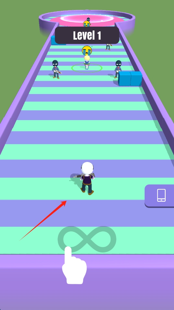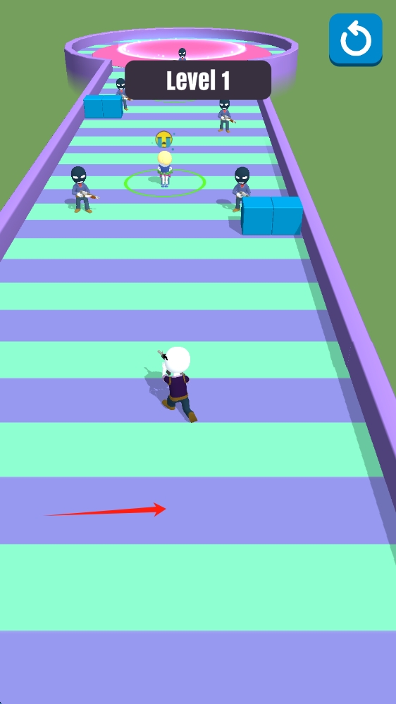 1、游戲場(chǎng)景中,跟隨箭頭指引,操控角色前進(jìn),避開(kāi)障礙,接近目標(biāo),點(diǎn)擊開(kāi)始游戲。