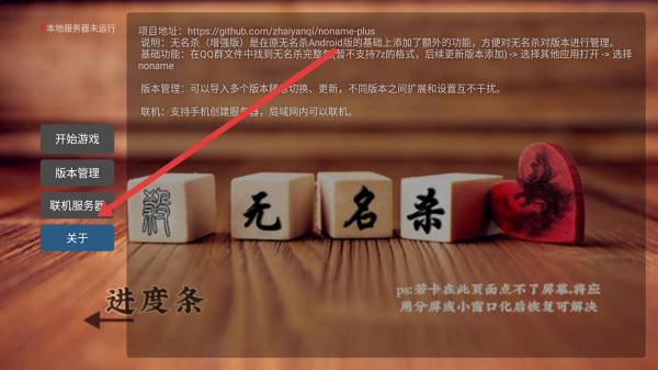 3、點(diǎn)擊關(guān)于按鈕,可查看項(xiàng)目地址、功能說(shuō)明等內(nèi)容,了解到這是無(wú)名殺增強(qiáng)版。