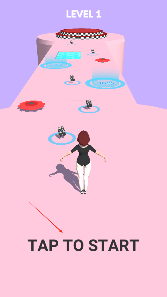 1、人物會原地旋轉(zhuǎn),找到合適的角度,點擊屏幕操縱人物往前走,收集路上的芭蕾舞鞋。