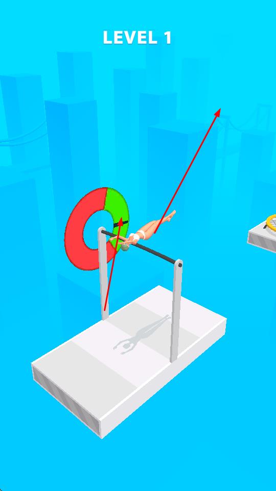 3、在后續(xù)關(guān)卡中,角色會(huì)遇到單杠等障礙物,需要通過精準(zhǔn)的操作,讓角色抓住單杠,完成旋轉(zhuǎn)等動(dòng)作,繼續(xù)推進(jìn)游戲進(jìn)程,完成關(guān)卡挑戰(zhàn)。