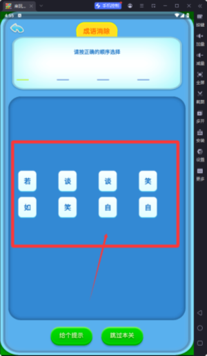 3、玩家可以自由選擇不同難度等級(jí)的關(guān)卡,循序漸進(jìn)地提升自己的成語(yǔ)知識(shí)儲(chǔ)備和解題能力,內(nèi)容豐富且寓教于樂(lè)。