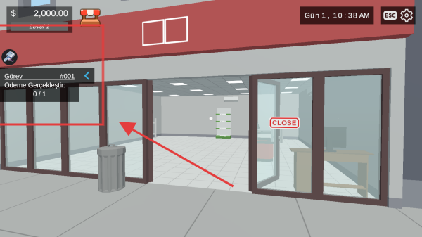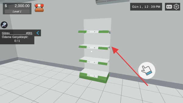 2、在游戲初始場景,按提示完成任務(wù)G?rev#001,進入超市內(nèi)部,開始進行超市經(jīng)營操作。