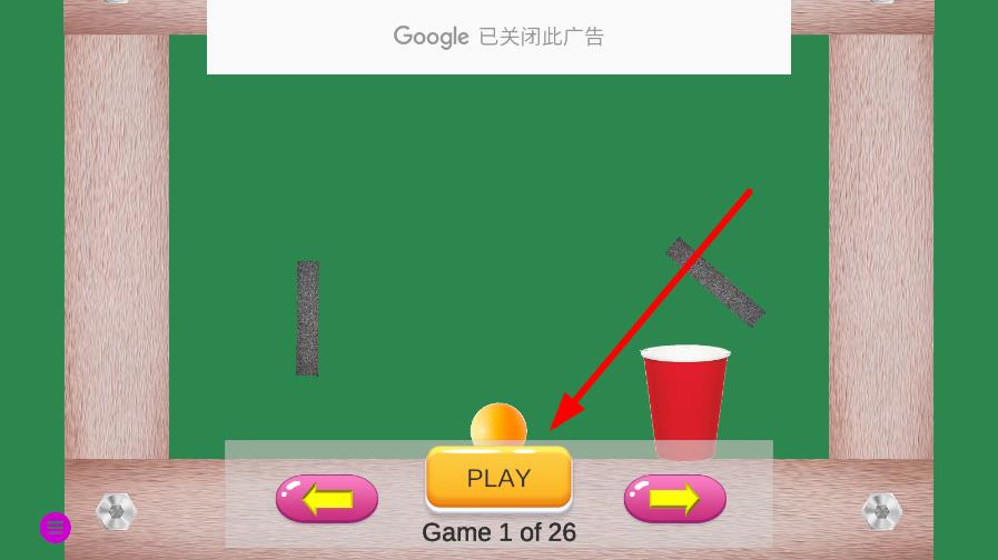 1、在關(guān)卡選擇界面,點(diǎn)擊黃色“PLAY”按鈕,進(jìn)入當(dāng)前關(guān)卡,觀察桌面上的物品,明晰小球起始點(diǎn)、障礙樣式與水杯位置,開啟解謎籌備。