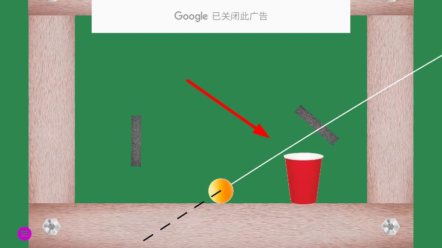 2、依據(jù)物理彈射邏輯,在屏幕虛擬繪制軌跡輔助線,反復(fù)調(diào)試角度、力度參數(shù),讓小球借助石塊進(jìn)行反彈,規(guī)避障礙沖向水杯。