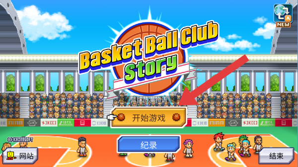 1、有開始游戲、紀錄、網(wǎng)站、結(jié)束等功能選項,以及畫面中的籃球場地、角色、觀眾席和贊助商廣告等元素。