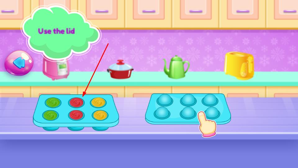 3、依據(jù)提示操作模具比如蓋蓋子等,規(guī)范處理制作部件,推進(jìn)蛋糕制作,解鎖美味成果。
