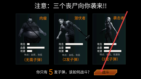 1、開始戰(zhàn)斗的喪失介紹頁面,首先了解不同類型喪尸的特點,包括攻擊、血量和攻速等,以便制定合適的戰(zhàn)斗策略。