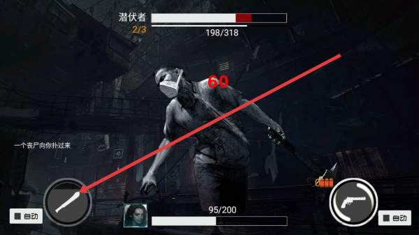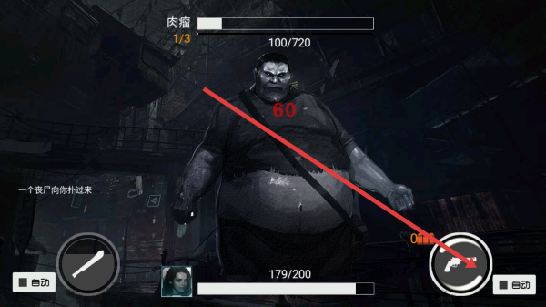 2、在戰(zhàn)斗過程中,點擊右下角的手槍按鈕,選擇合適的時機進行射擊,連續(xù)點擊減少喪尸能量條。
